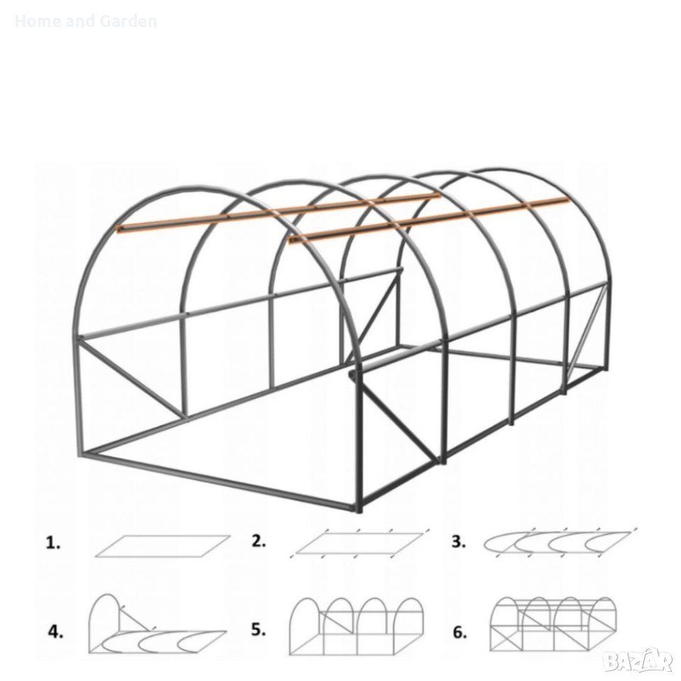 Метална конструкция за градински тунел — оранжерия, няколко размера