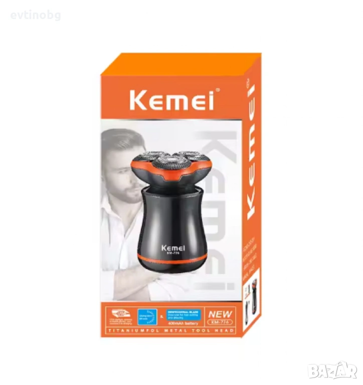 KEMEI Акумулаторна електрическа самобръсначка KM-776 е водоустойчива безжична самобръсначка, предназначена за мъже. С модерна тройна острие система, осигуряваща гладко и прецизно бръснене. Характеризира се с мощност от 4W и работно напрежение от 5V, което гарантира ефективност и комфорт. Времето за зареждане е 1.5 часа, а след това може да се използва безжично за дълги сесии. Идеална за пътувания, благодарение на водоустойчивото си покритие, което позволява лесно почистване под течаща вода.