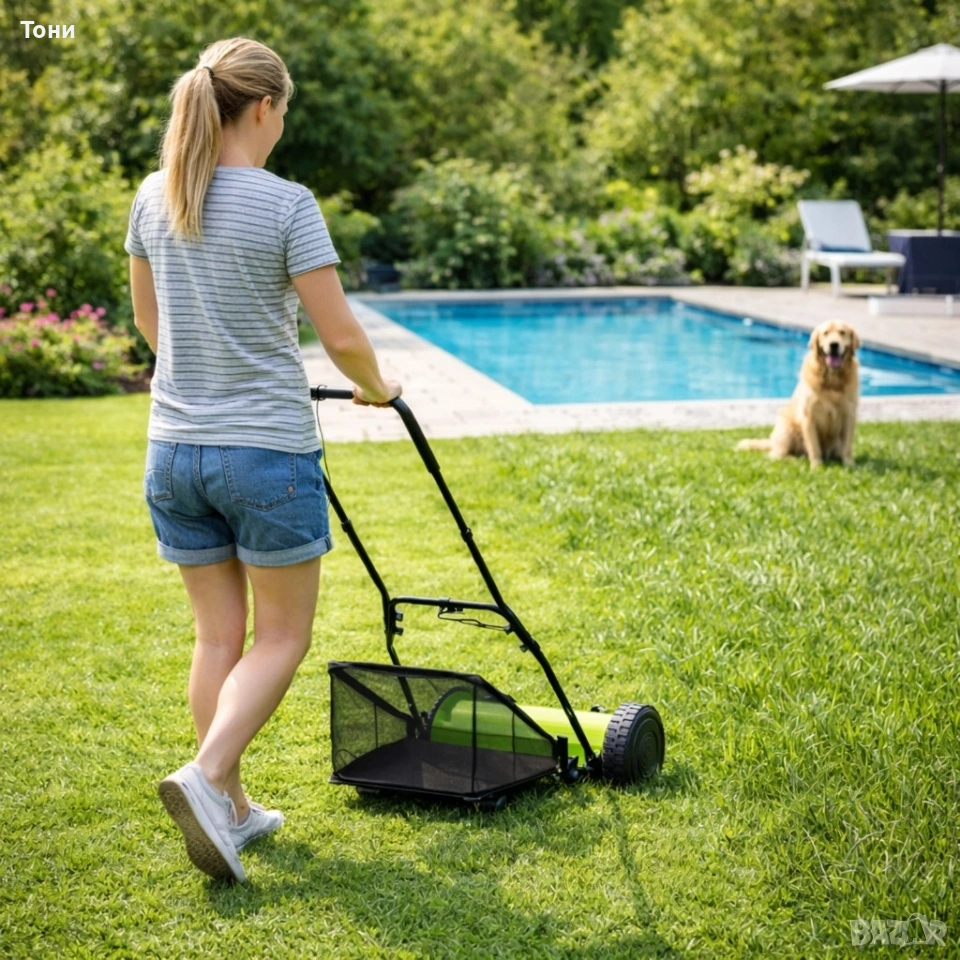 Ръчна косачка за трева с кош 40 см (16"), 5 остриета, регулируема височина 17–33 мм → Обява 53941852