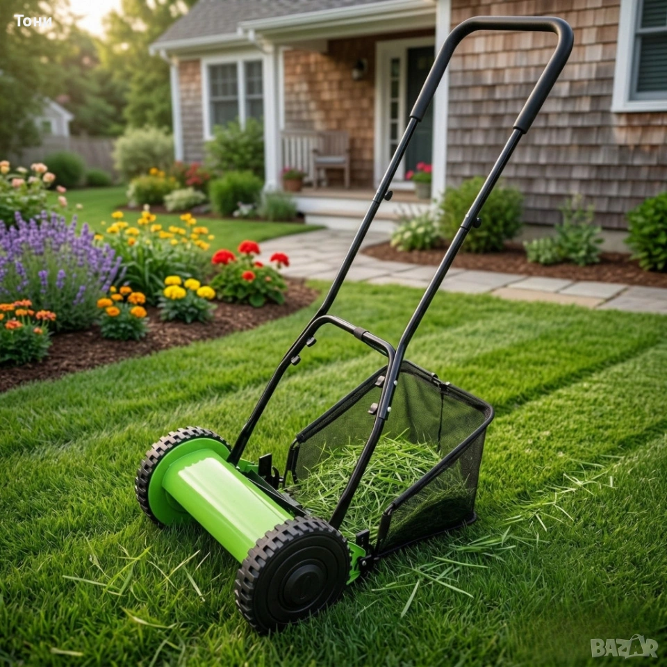 Тип: ръчна, механична, бутателна, роторна косачка без двигател.