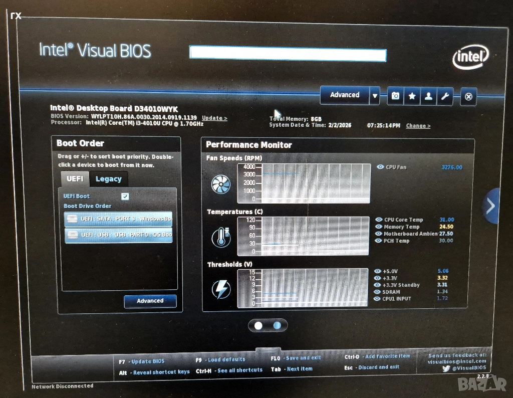 изключително компактен и надежден мини компютър Intel NUC. Машината е в