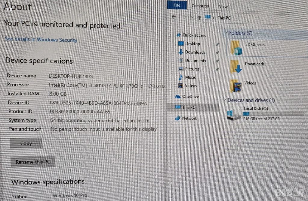Операционна система: Windows 10 Pro - за преинсталация