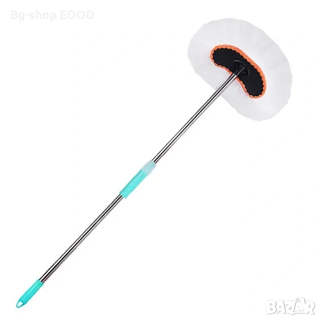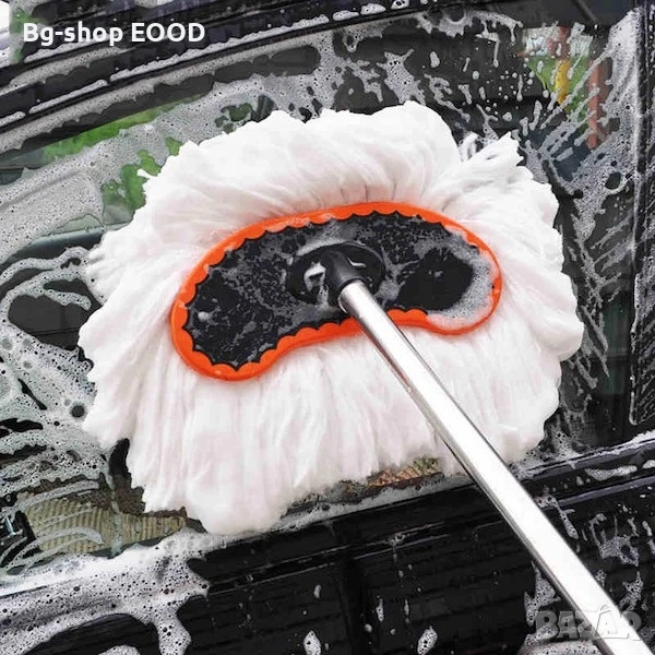Благодарение на въртящата се на 360° глава достигаш лесно до труднодостъпни места – покрив, стъкла, фарове и други. Меката памучна част задържа вода и препарат, като почиства внимателно без да наранява повърхността.