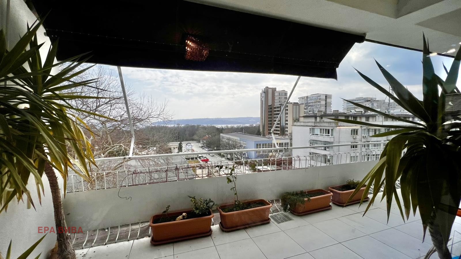 САМО В ЕРА Вива! Продажба на тристаен апартамент в района на Спортна зала, на 1 мин от Морската градина, гр. Варна. Жилището е с площ от 85 кв.м. и функционално разпределение коридор, просторна всекидневна, две спални, баня, отделна тоалетна и зимна градина, която създава допълнително усещане за комфорт. Истинският акцент е впечатляващата тераса от 40 кв.м. с уникална морска панорама. Имотът се предлага напълно обзаведен и оборудван, като към него има и избено помещение с площ от 8 кв.м.
