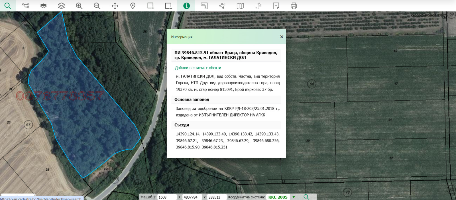 ПРОДАВАМ ПАКЕТ ~88 ДКА (87 991 кв.м) ЗЕМЕДЕЛСКИ ЗЕМИ И ГОРИ ГАЛАТИН / КРИВОДОЛ / ВЕСЛЕЦ