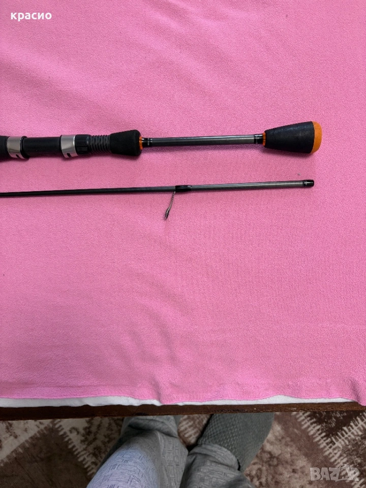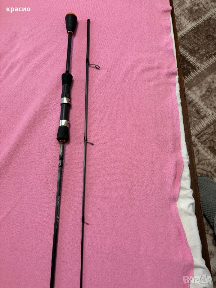 Въдицата е перфектно състояние фаст строй , 2,13 дълга,акция 7.25грама с Фуджи макара държач и водачи.