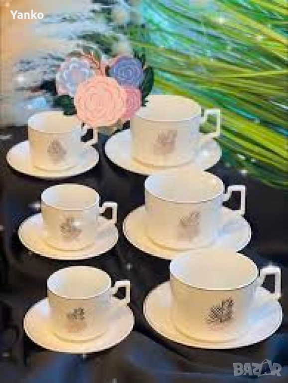 Луксозен олекотен порцеланов комплект от 12 части, за вашия изискан стил . В два размера: Голям и м → Обява 53942737