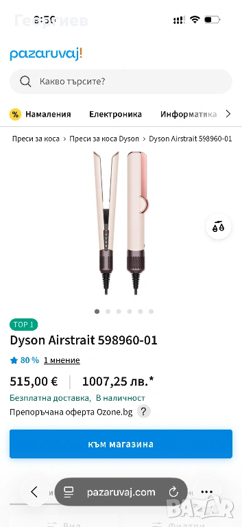 Оригинална Преса за коса Dyson - HT01 Airstrait Ceramic Pink / Rose Gold, снимка 1 - Преси за коса - 53942748 Оригинална Преса за коса Dyson - HT01 Airstrait Ceramic Pink / Rose Gold, снимка 2 - Преси за коса - 53942748 Оригинална Преса за коса Dyson - HT01 Airstrait Ceramic Pink / Rose Gold, снимка 3 - Преси за коса - 53942748 Оригинална Преса за коса Dyson - HT01 Airstrait Ceramic Pink / Rose Gold, снимка 4 - Преси за коса - 53942748 Оригинална Преса за коса Dyson - HT01 Airstrait Ceramic Pink / Rose Gold, снимка 5 - Преси за коса - 53942748 1/5