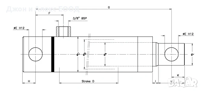 Kramp EPL60200CB – Прът: 60mm, Ход: 200mm, Мин. дължина: 360mm, Връзка: 3/8", Отвор: 25.4mm, Външен Ø: 75mm.
