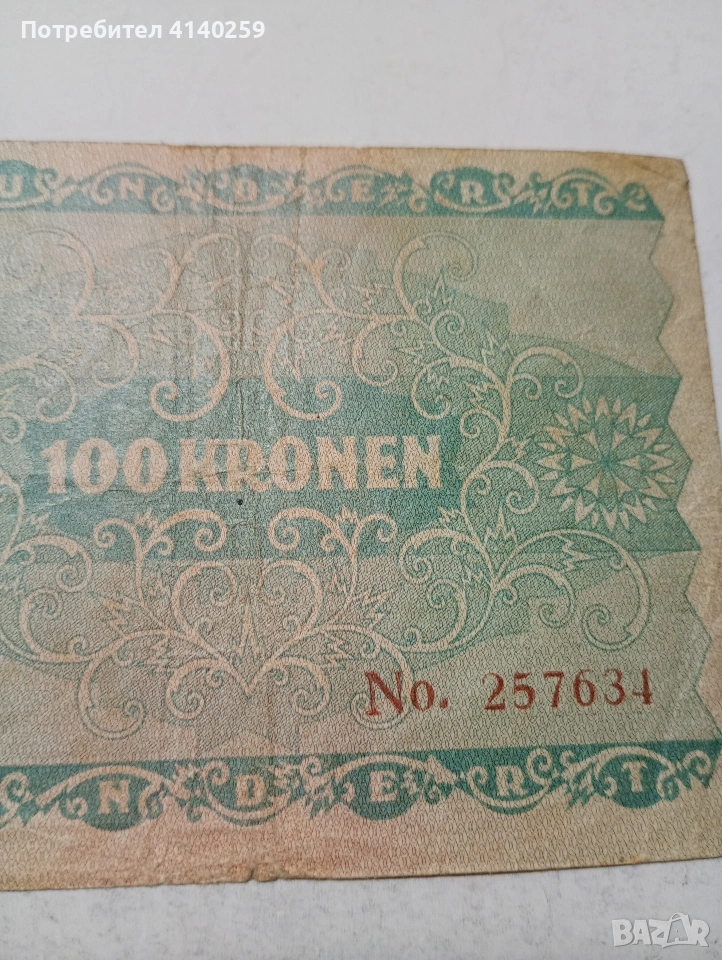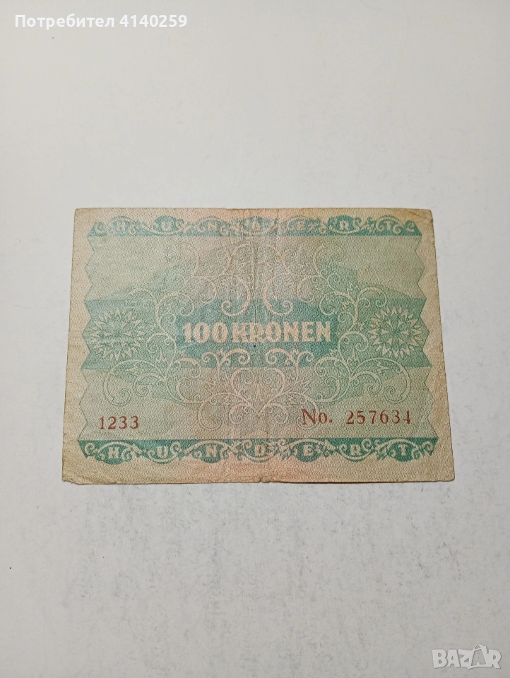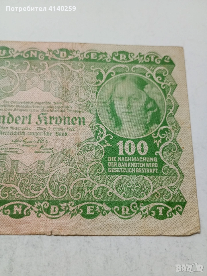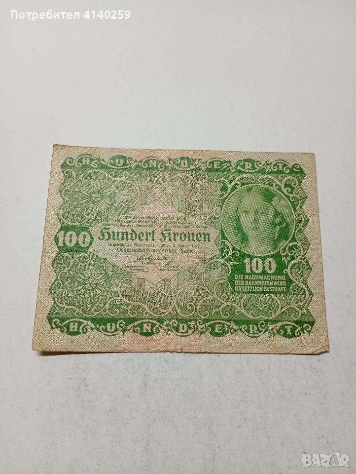 АВСТРИЯ БАНКНОТА 100 КРОНИ 1922 Г СЪСТОЯНИЕ ВИДИМО ПОЛУЧАВАТЕ СНИМАНАТА БАНКНОТА РАЗГЛЕДАЙТЕ ДРУГИТЕ МИ ОБЯВИ ДА КОМБИНИРАТЕ ДОСТАВКА ЕКОНТ ЗА ВАРНА ЛИЧНО