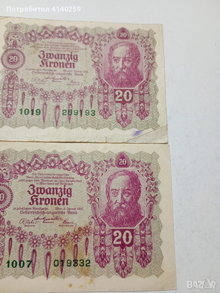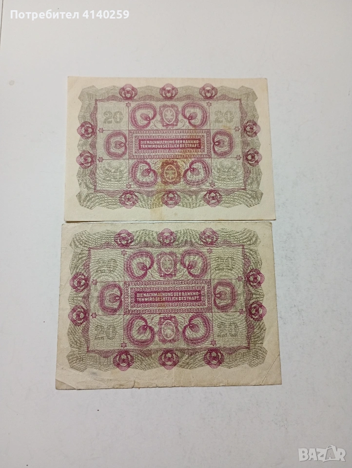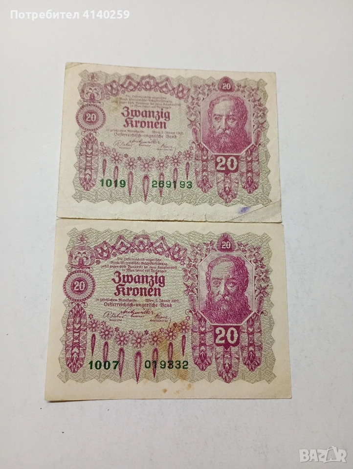 АВСТРО -УНГАРИЯ БАНКНОТИ 20 КРОНИ 1922 Г ЦЕНА ЗА 2 БРОЯ СЪСТОЯНИЕ ВИДИМО ПОЛУЧАВАТЕ СНИМАНИТЕ БАНКНОТИ РАЗГЛЕДАЙТЕ ДРУГИТЕ МИ ОБЯВИ ДА КОМБИНИРАТЕ ДОСТАВКА ЕКОНТ ЗА ВАРНА ЛИЧНО