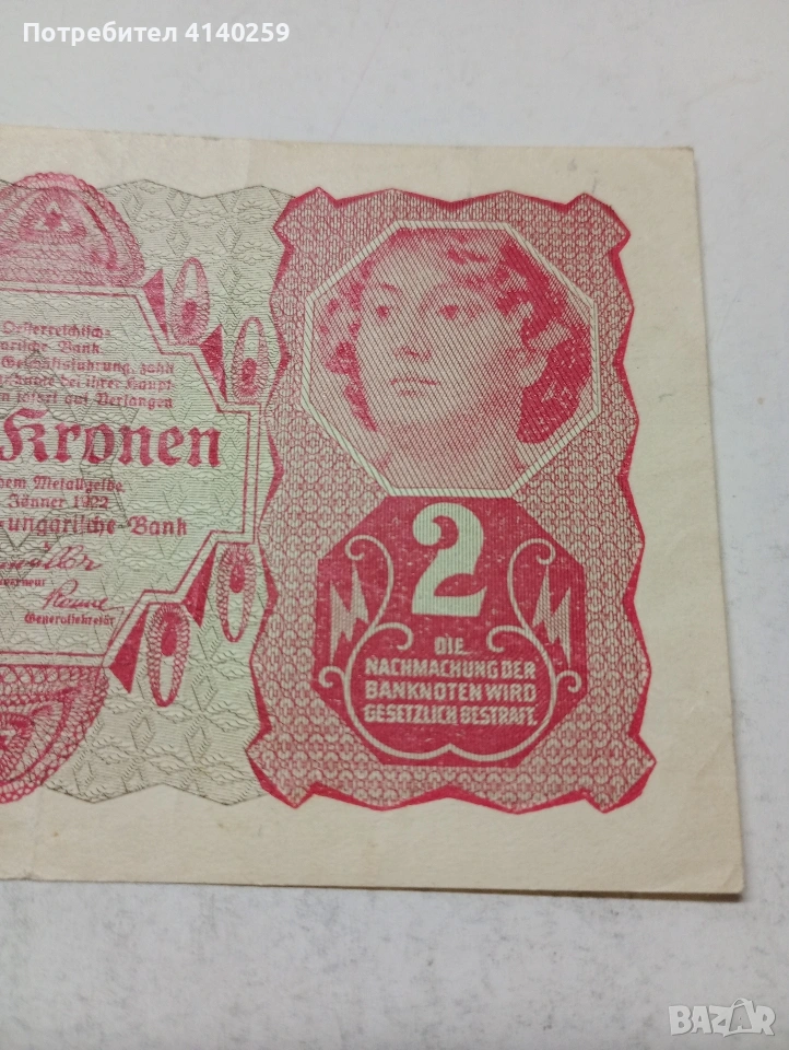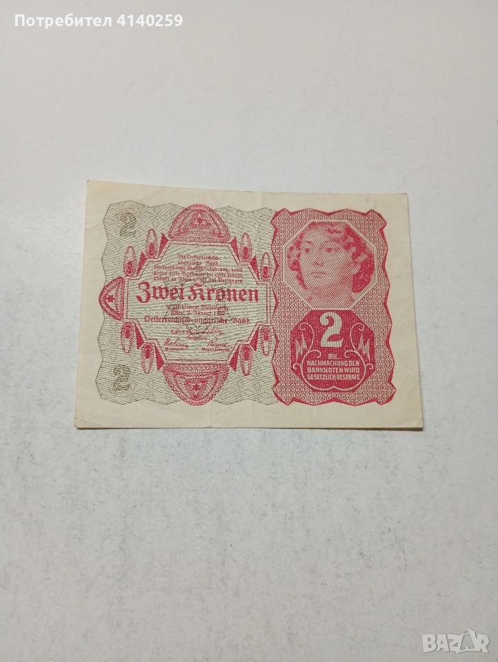 АВСТРИЯ БАНКНОТА 2 КРОНИ 1922 Г СЪСТОЯНИЕ ВИДИМО ПОЛУЧАВАТЕ СНИМАНАТА БАНКНОТА РАЗГЛЕДАЙТЕ ДРУГИТЕ МИ ОБЯВИ ДА КОМБИНИРАТЕ ДОСТАВКА ЕКОНТ ЗА ВАРНА ЛИЧНО