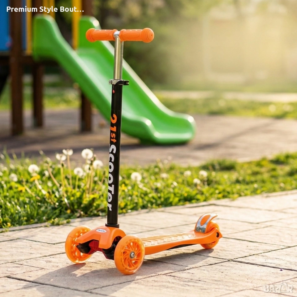 Детска сгъваема тротинетка 21st Scooter със светещи силиконови колела – Оранжева