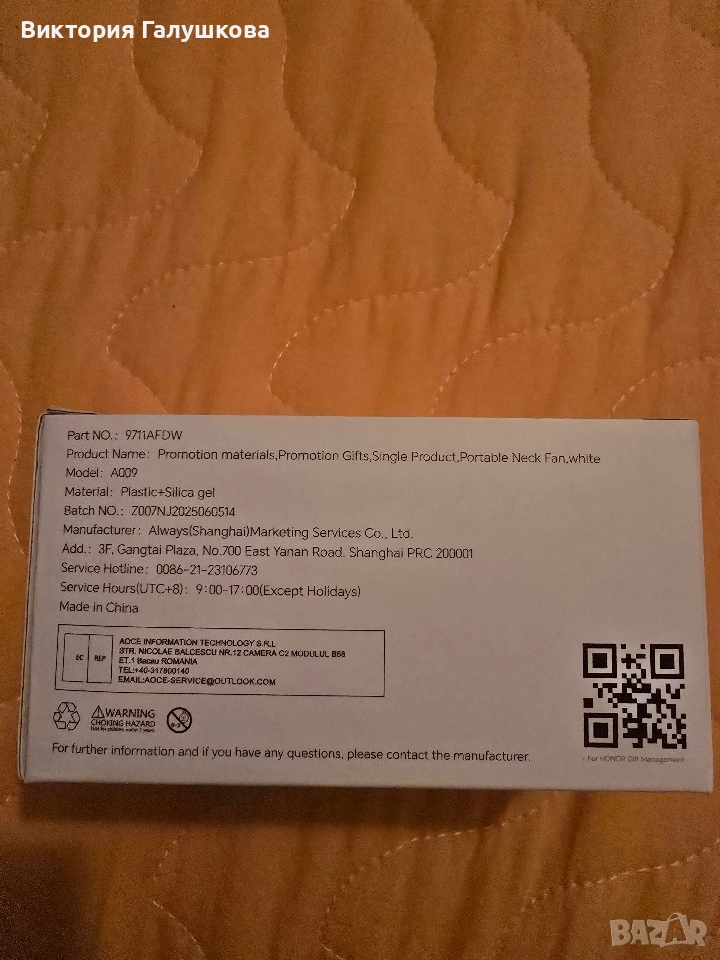 Безжичен вентилатор за врат Honor → Обява 53943128