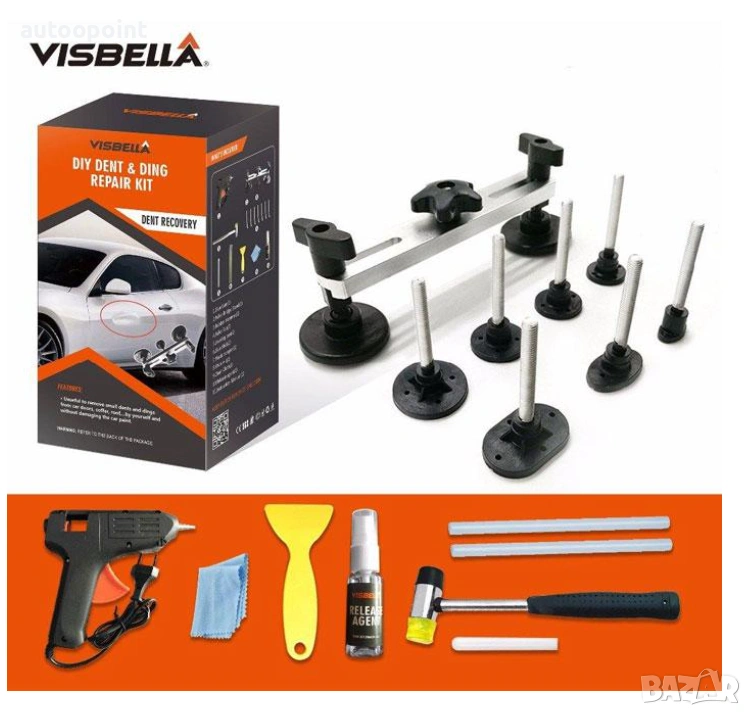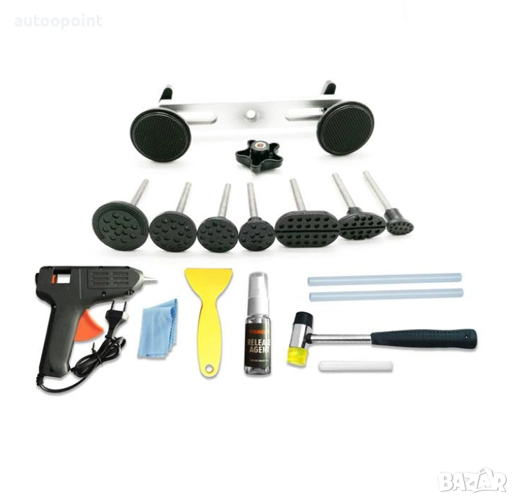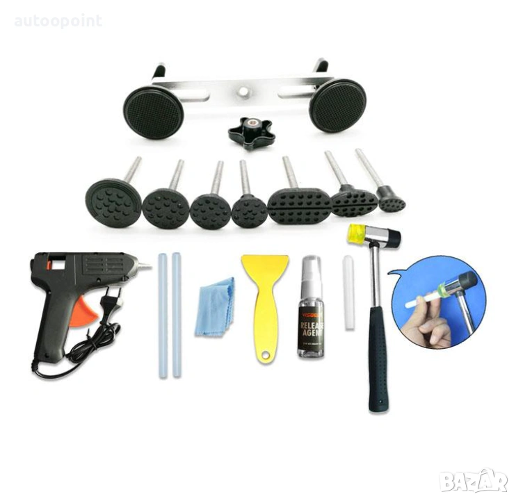 Комплектът е подходящ за изчистване на следи от малки вдлъбнатини, без риск от повреда по купето и боята.