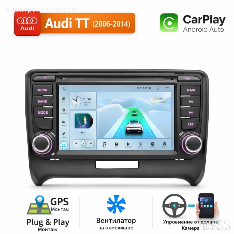 7″ Android мултимедия за Audi TT (2006–2014) | CarPlay | Plug & Play | Навигация