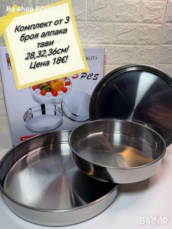 Продава се комплект от 3 броя кръгли тави за печене – практично решение за всяка кухня. Подходящи за приготвяне на баници, кексове, печива, месо и други вкусни ястия.