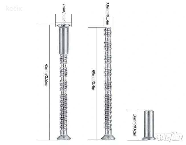 Полираното никелово покритие придава огледален гланцов вид и запазва блясъка си за дълго време. Можете да отрежете винтовете според конкретната действителна ситуация и необходимата дължина.