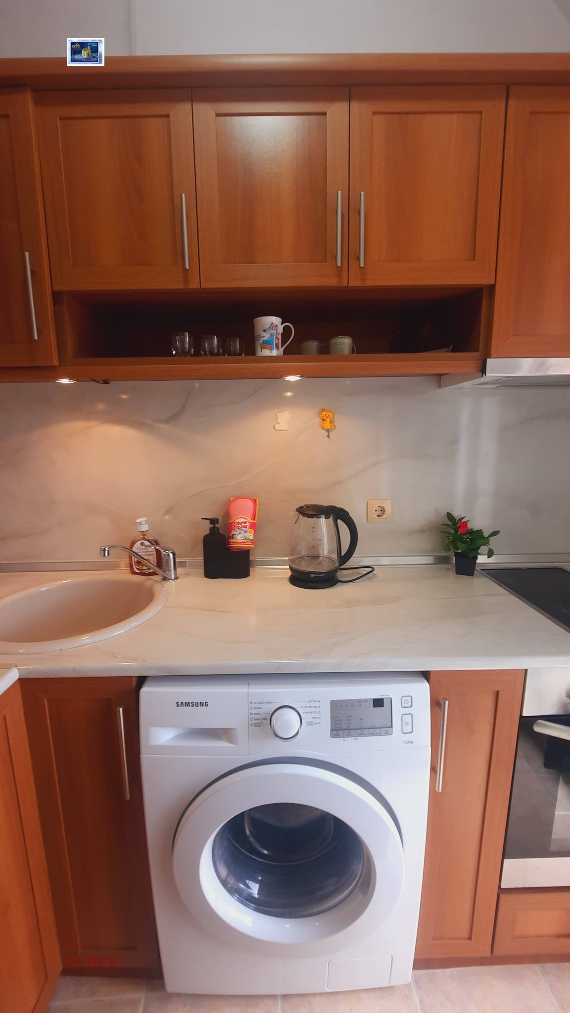 Жилището е напълно обзаведено и оборудвано с всички необходими домакински електроуреди и удобни мебели.