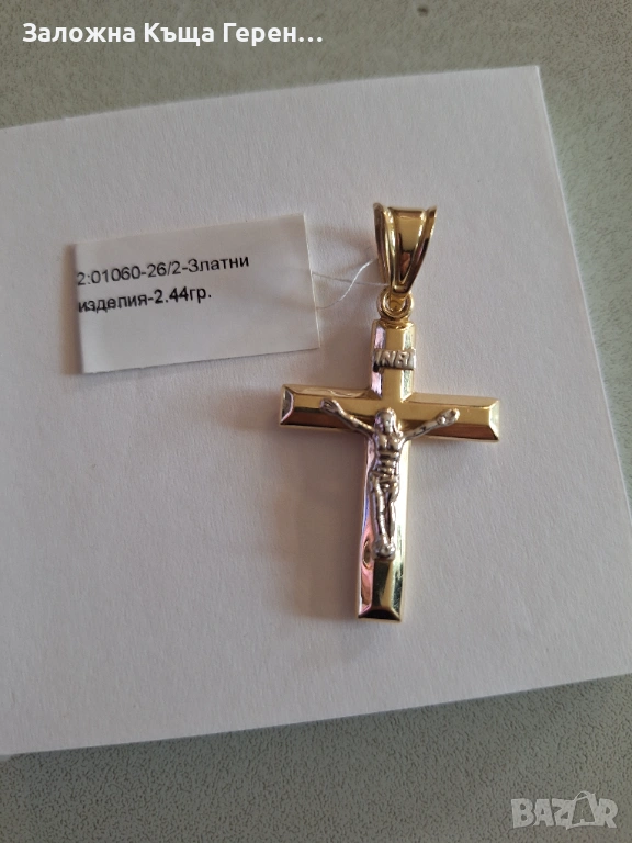 Златен кръст 2,44гр.14к, снимка 1 - Колиета, медальони, синджири - 53943459 Златен кръст 2,44гр.14к, снимка 2 - Колиета, медальони, синджири - 53943459 Златен кръст 2,44гр.14к, снимка 3 - Колиета, медальони, синджири - 53943459 1/3