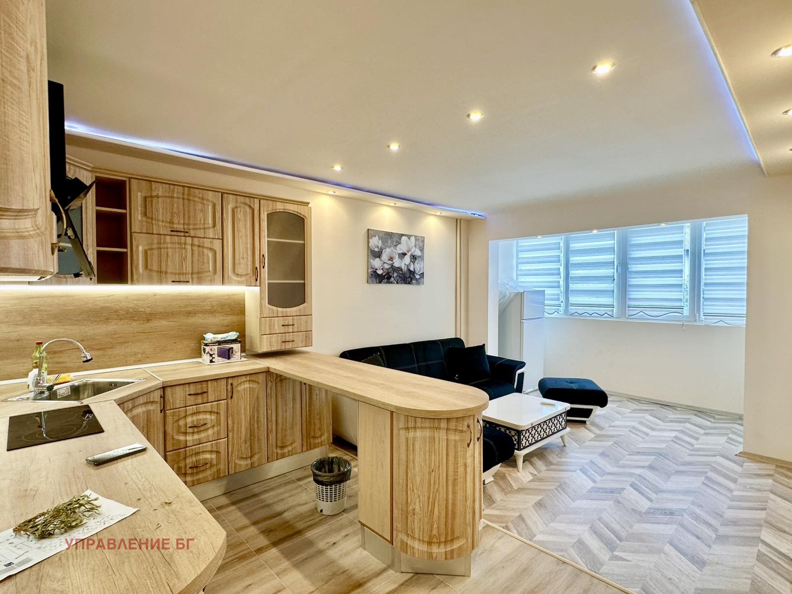 Жилището е светло и уютно, с отлично обзавеждане и всичко необходимо за комфорта на едно домакинство. Разполага с дневна с кухненски бокс, спалня, трета самостоятелна стая ( спалня, кабинет ), баня с тоалетна