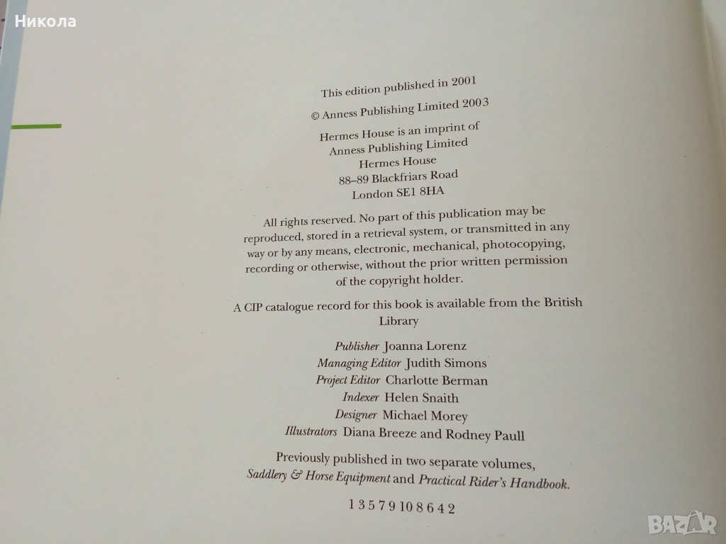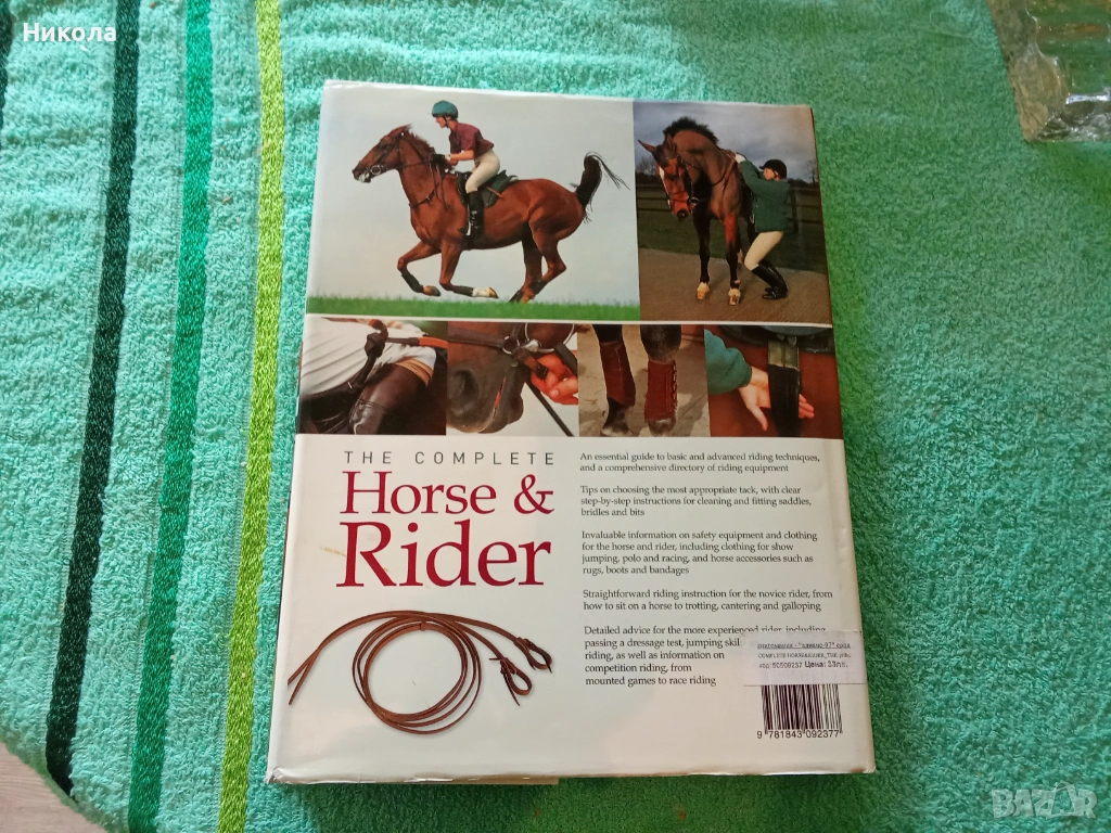 The complete Horse & ,Rider - "Пълно ръководство на ездача" е най-добрата книга създавана някога за начинаещи и напреднали издачи. Луксозно издание, твърди корици, голям формат 31х24 см, английски език, стр. 256, съдържа над 1 000 висококачествени фотографии, тегло 1,6 кг. Книгата е по същество чисто нова, има кратко посвещение на първа празна страница. Отлична за ездачи и любители на конете.