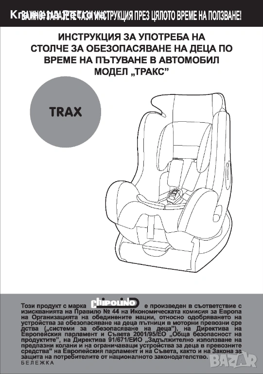 - Монтажът на модел Тракс се осъществява с помощта на предпазните 3 точкови колани на автомобила;