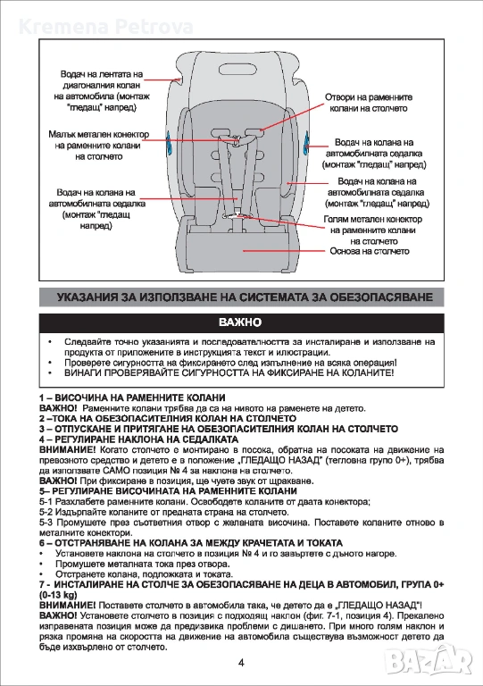 - 5 точков регулиращ се на височина предпазен колан с меки подплънки;