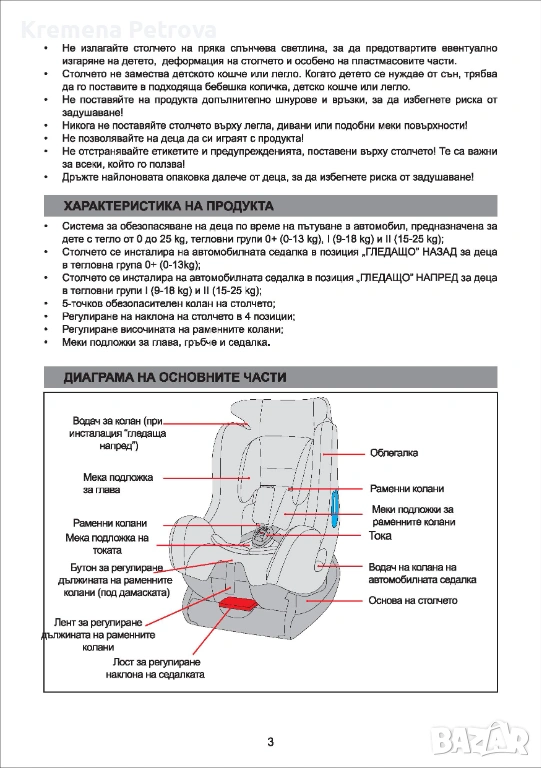 - Подходящо за деца с тегло от 0 до 25 кг, обхващащо групи 0+, I и II;