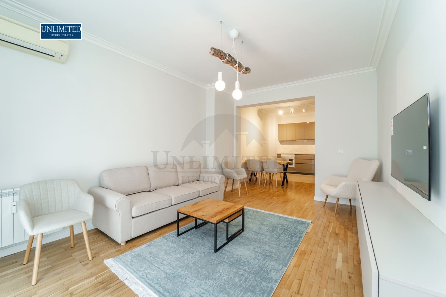 We are pleased to present a fully renovated luxury two-bedroom apartment located in the very heart of Sofia, just meters from the Bulgarian Parliament and the iconic Yellow Cobblestones.