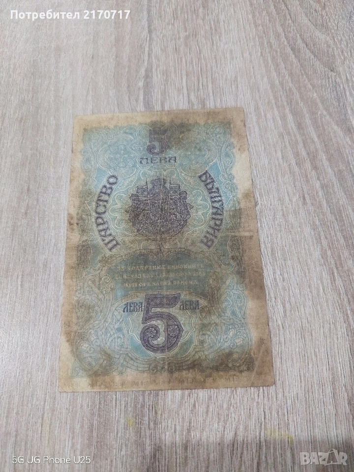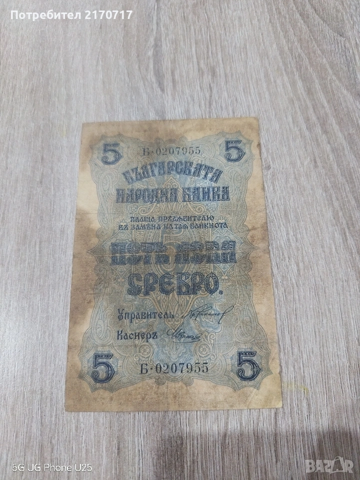 Банкнота 5 лева 1916 година → Обява 53944317