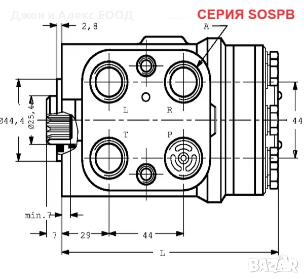 СЕРИЯ SOSPB (Стандартна – Open Center / Non-Reaction) Макс. работно налягане: 175 BAR, Т-порт налягане: 25 BAR, Връзки: 1/2" BSP.