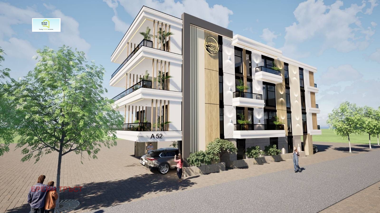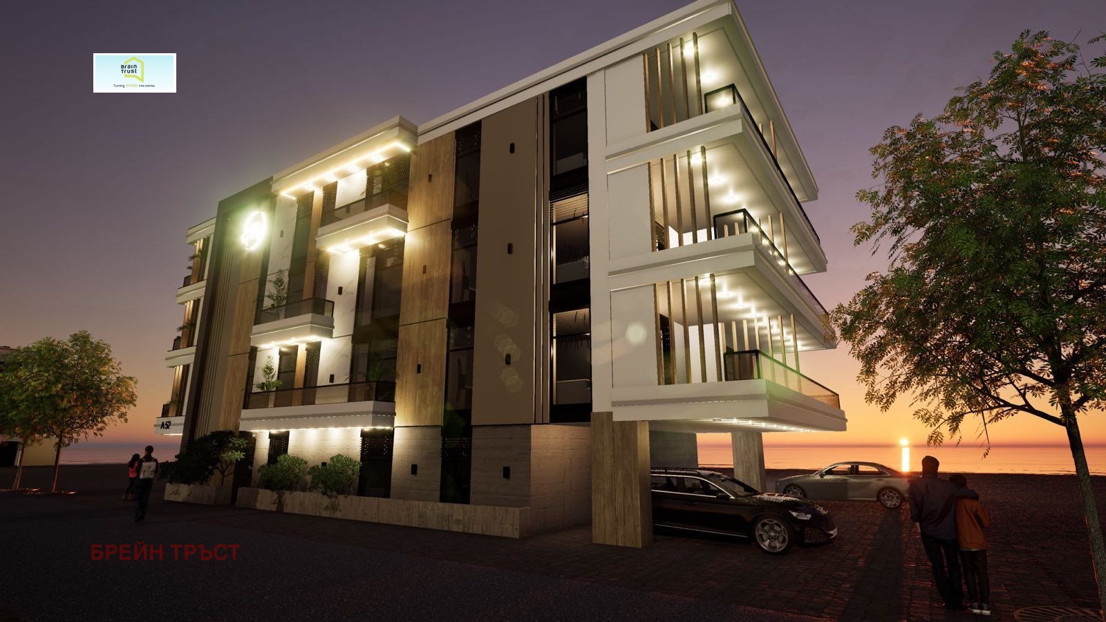 Brain Trust представя двустайни апартаменти в новострояща се сграда на 200 метра от плажа в Неа Каликратия. Жилищата са между 45 кв.м. и 50 кв.м. Имотите са със следното разпределение: