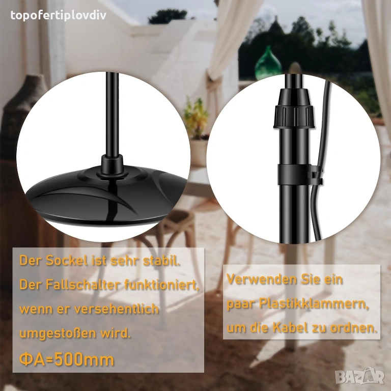 Усъвършенствана система за защита от изгасване на пламъка - Нагревателят има защита от прегряване. Когато достигне определена температура, той автоматично ще се изключи, за да се избегнат инциденти и да се защити вашата лична безопасност. Можете да използвате нашите нагреватели с увереност.