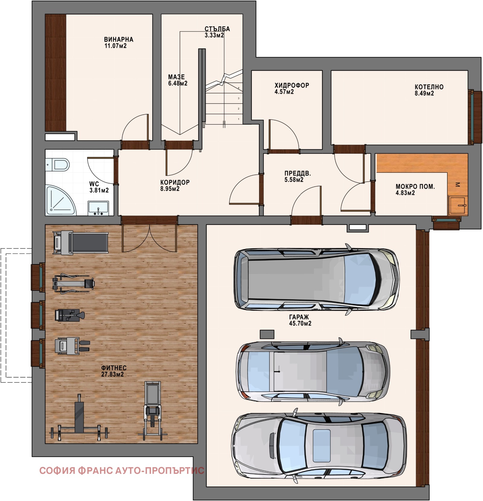 Къщата е с РЗП 535 кв.м. и двор 605 кв.м. , с 5 просторни спални, гараж за 2 коли , помещения за фитнес и винарна, напълно завършена и обзаведена на цена 1679 Евро/кв. м без ДДС, направо от собственик. Не се дължи комисионна.