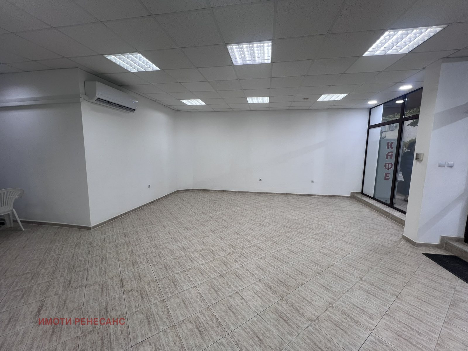 Помещение реални 75кв.м., ситуирано с много добра локация, в перфектно състояние, с голяма и широка фасада, заден вход - с паркоместо и възможност за зареждане, височина 2,80. Помещението е климатизирано, с монтирана аспирация и СОД. Изключително подходящо за частна занималня, фризьорски или козметичен салон, магазин, йога студио или офис. Санитарния възел е снабден с бойле и душ.