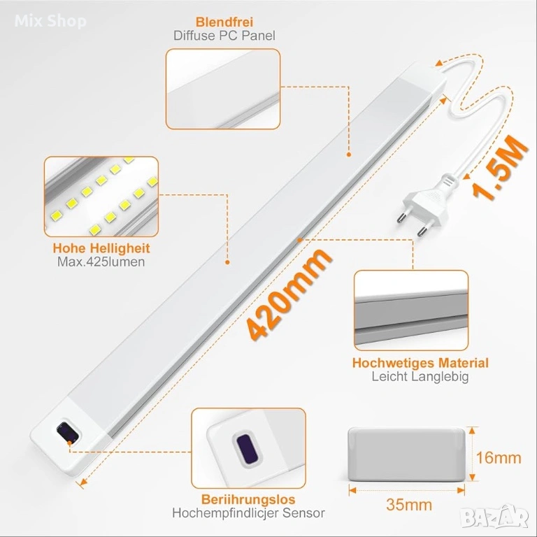 Широко приложение: изработена от висококачествени дебели ABS и PC материали, които са здрави и издръжливи. Идеална за кухни, шкафове, работни маси, рафтове, витрини, подземни гаражи, гардероби, работни маси и други тъмни места.