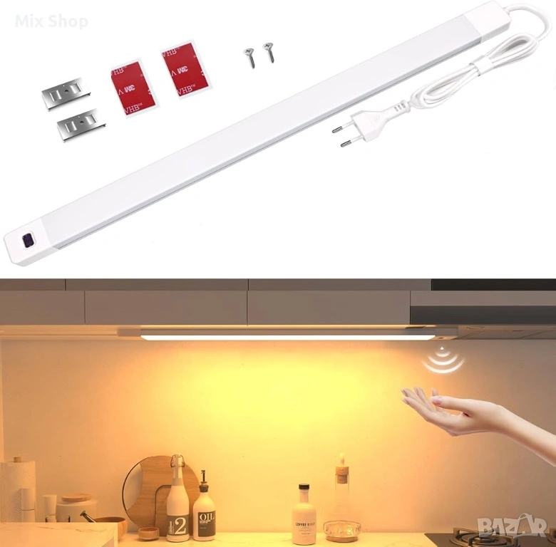 Ново LED осветление за под шкаф за кухня, 42 см светлинна лента за кухня, активиране с ръка (сензор)