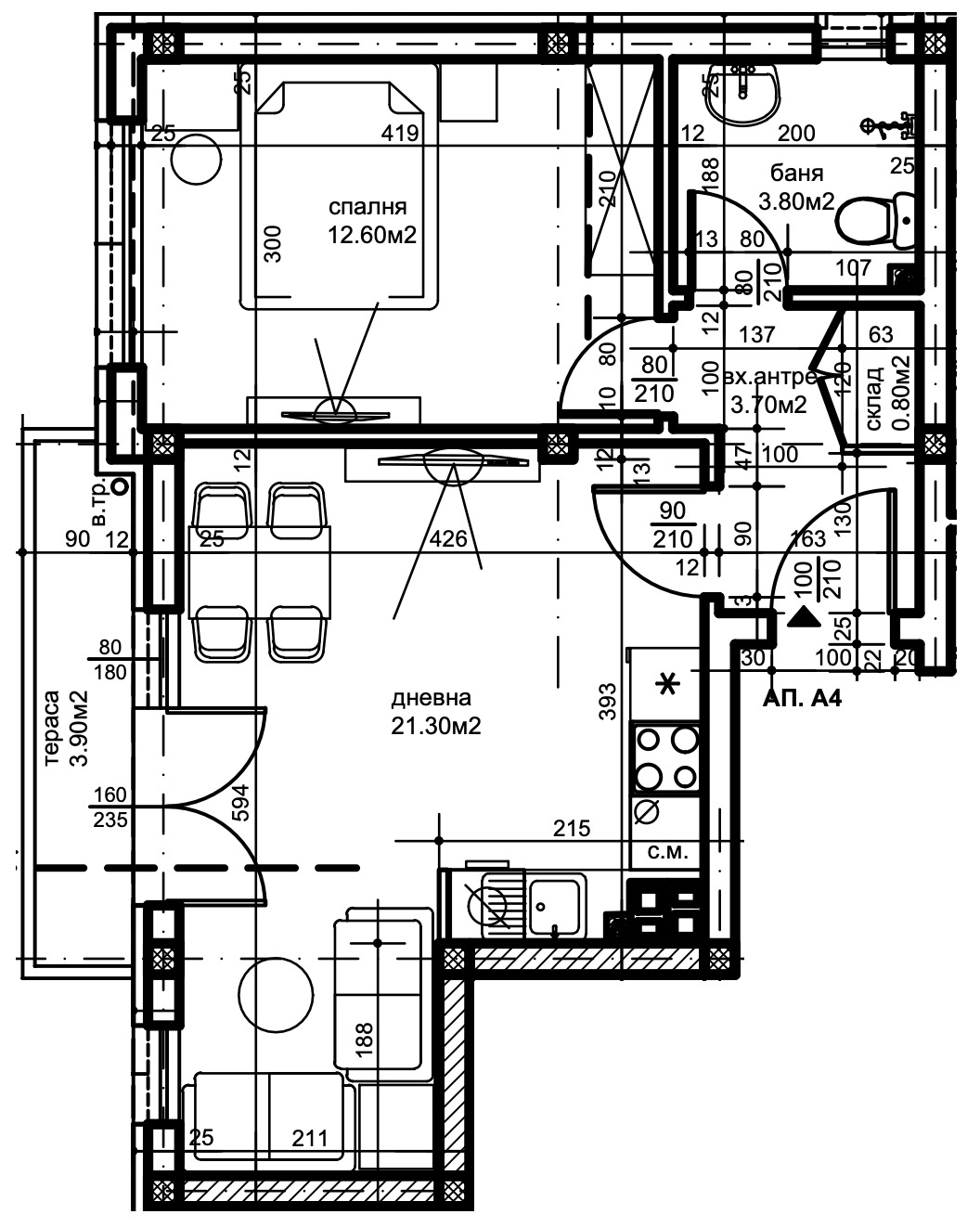 ➡Апартаментът се състои от антре, склад, баня с тоалетна, спалня, дневна с трапезария, тераса и е с обща площ от 67,08 кв.м.