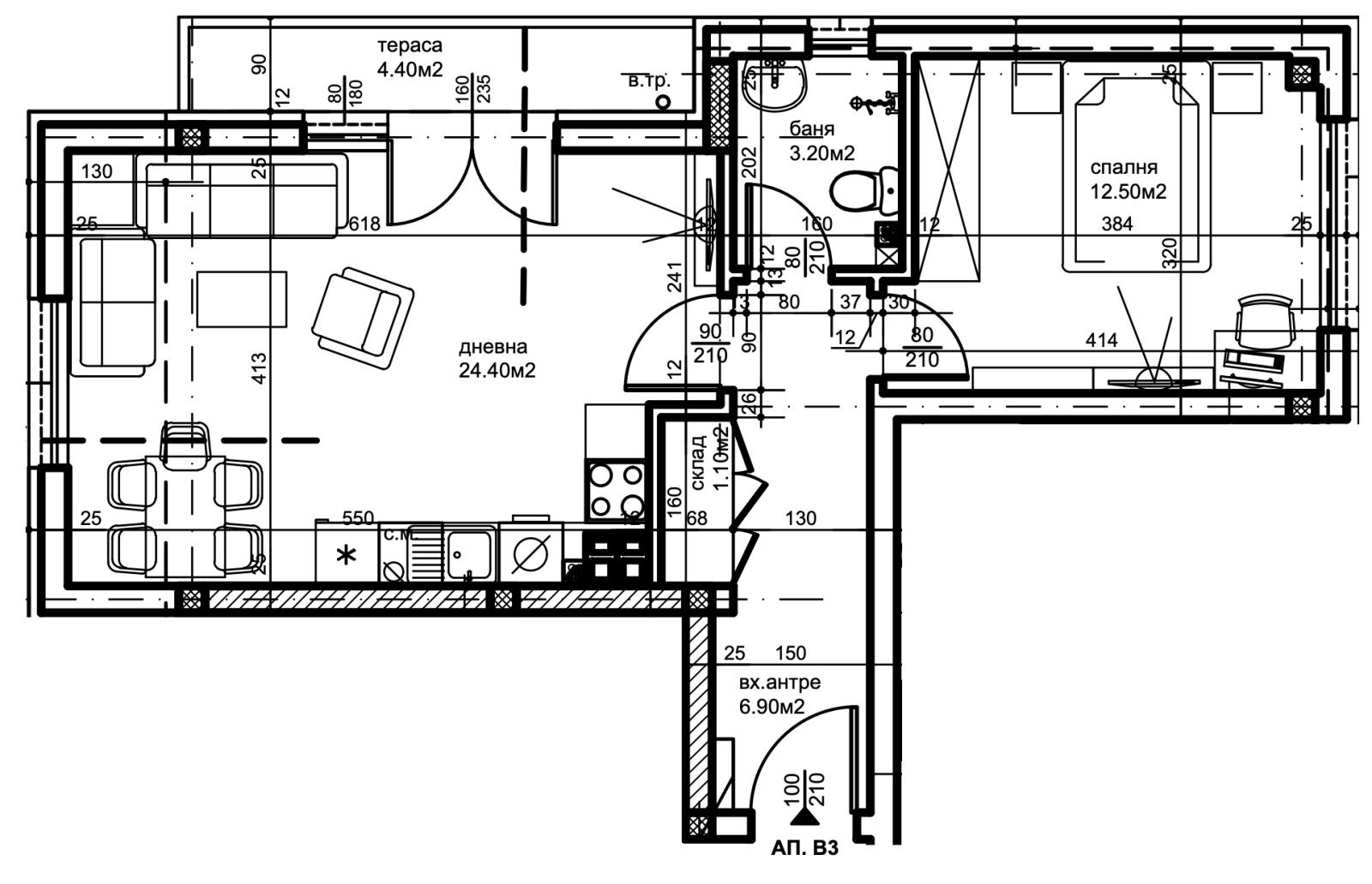 ➡Апартаментът се състои от антре, склад, баня с тоалетна, спалня, дневна с трапезария, тераса и е с обща площ от 78,26 кв.м.