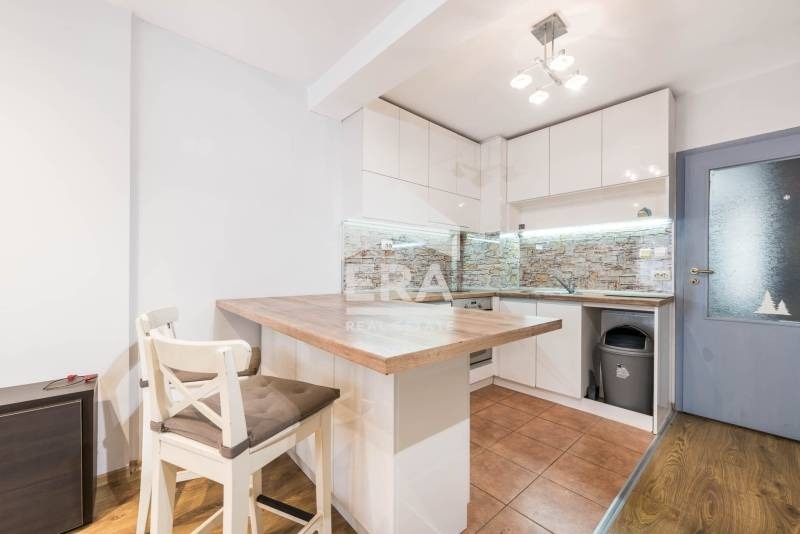 Жилището се продава с наличното обзавеждане и ел. уреди. Има климатик в дневната. Подовите покрития са ламинат и теракот. Поставена е ПВЦ дограма. Направена е външна изолация на апартамента. Имотът е подходящ и за инвестиция чрез отдаване под наем.