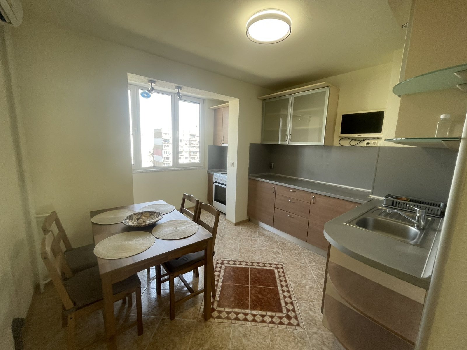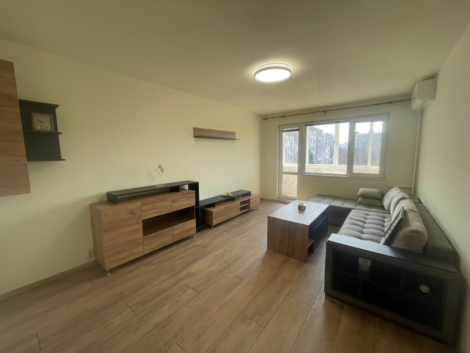Апартаментът е функционално разпределен и предлага светли и просторни помещения, подходящи за голямо семейство.