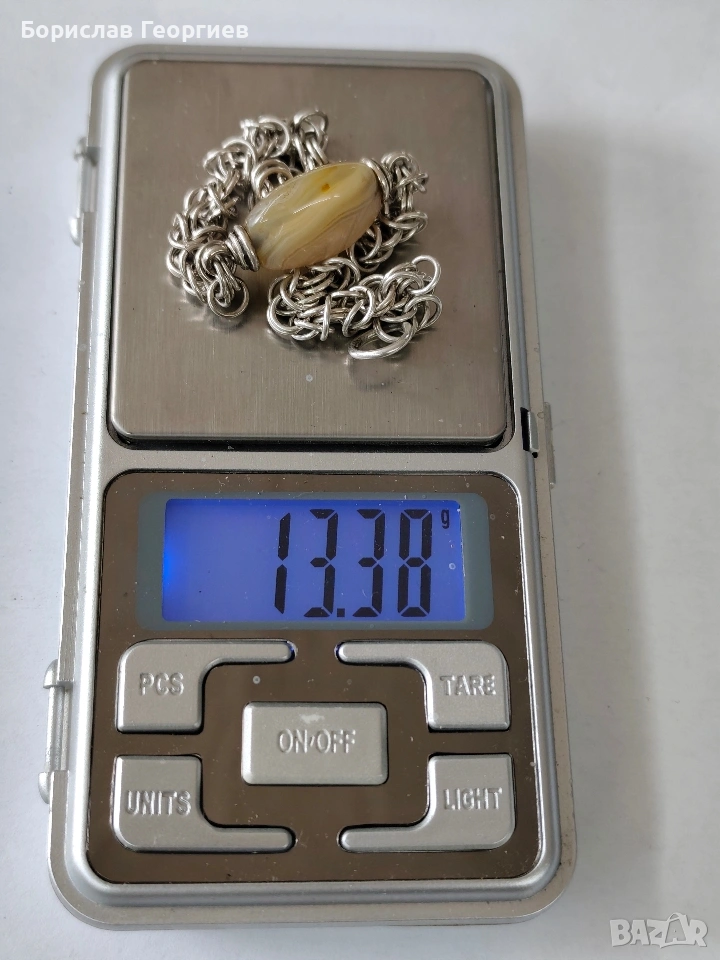 Сребърна гривна с проба 950.Камъка прилича на ахат.Дължина 17 см.