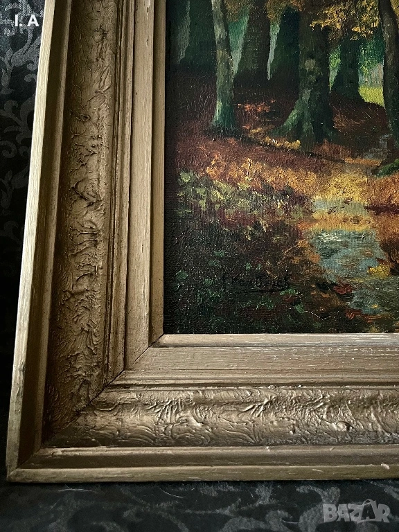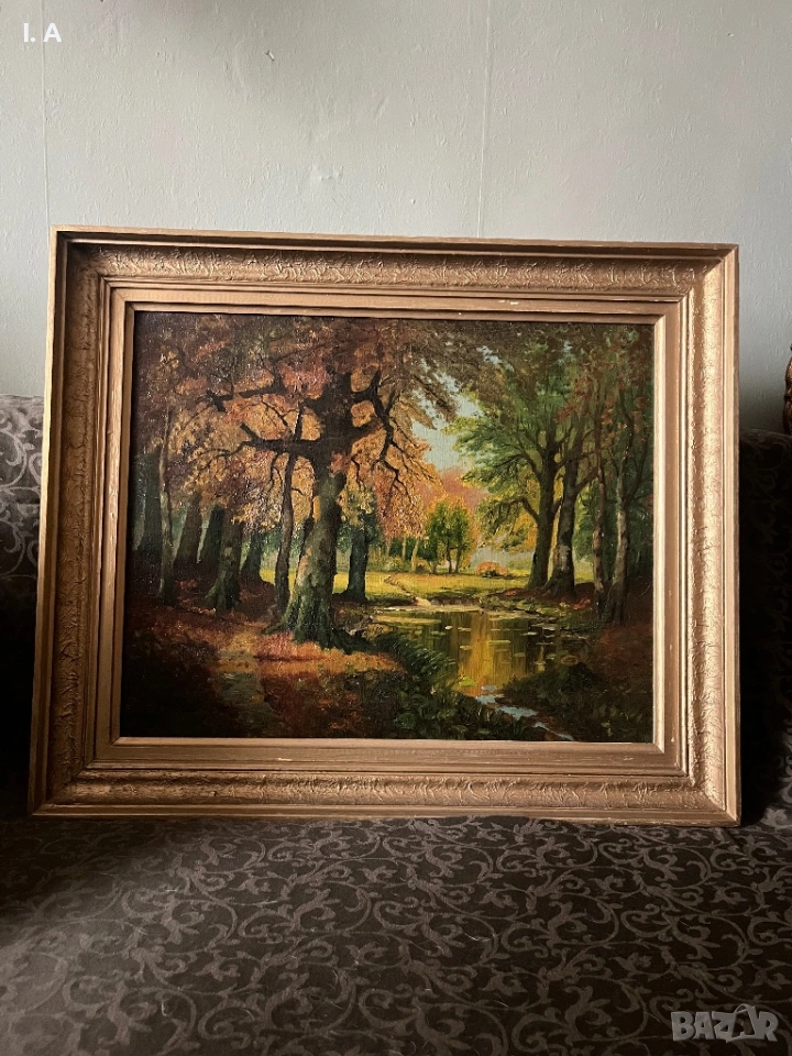 Продавам холандска маслена картина от 20ти век, изобразяваща горист есенен пейзаж, подписана от F. Van Olleck.