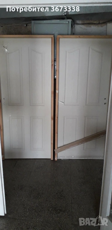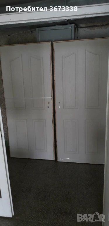 Два броя нови интериорни врати (лява и дясна). Размери: ширина на касата - 88 см., височина - 201 см; ширина на вратата - 83,5 см., височина - 197 см.), с брави и ключове, без дръжки; цвят бял. Позвънете между 18.00 и 20.00 часа.