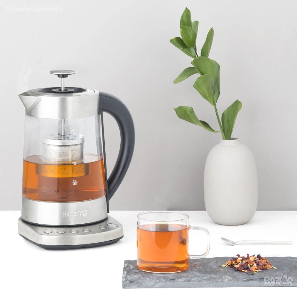 Можете също така да приготвяте чай за много хора благодарение на капацитета му от 1,7 литра. Функцията му за поддържане на топлина ви позволява да поддържате водата на избраната температура за дълго време.