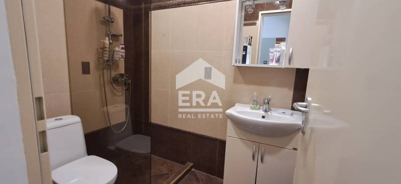 ЕКСКЛУЗИВНО! ОБЗАВЕДЕН ЮГОЗАПАДЕН АПАРТАМЕНТ С МОРСКА ПАНОРАМА, В ТУХЛЕНА СГРАДА. ЕРА Варна Тренд предлага за продажба двустаен апартамент със застроена площ 56 кв.м (62 кв.м с общите части), разположен на трети етаж от общо 4 етажа. Имотът се състои от дневна с кухненски бокс (22 кв.м), спалня (11,6 кв.м), обща за двете стаи тераса (2,4 кв.м), коридор (8 кв.м) с вграден гардероб и баня с тоалетна (5,24 кв.м). Изложението е юг/запад. Открива се морска панорама.