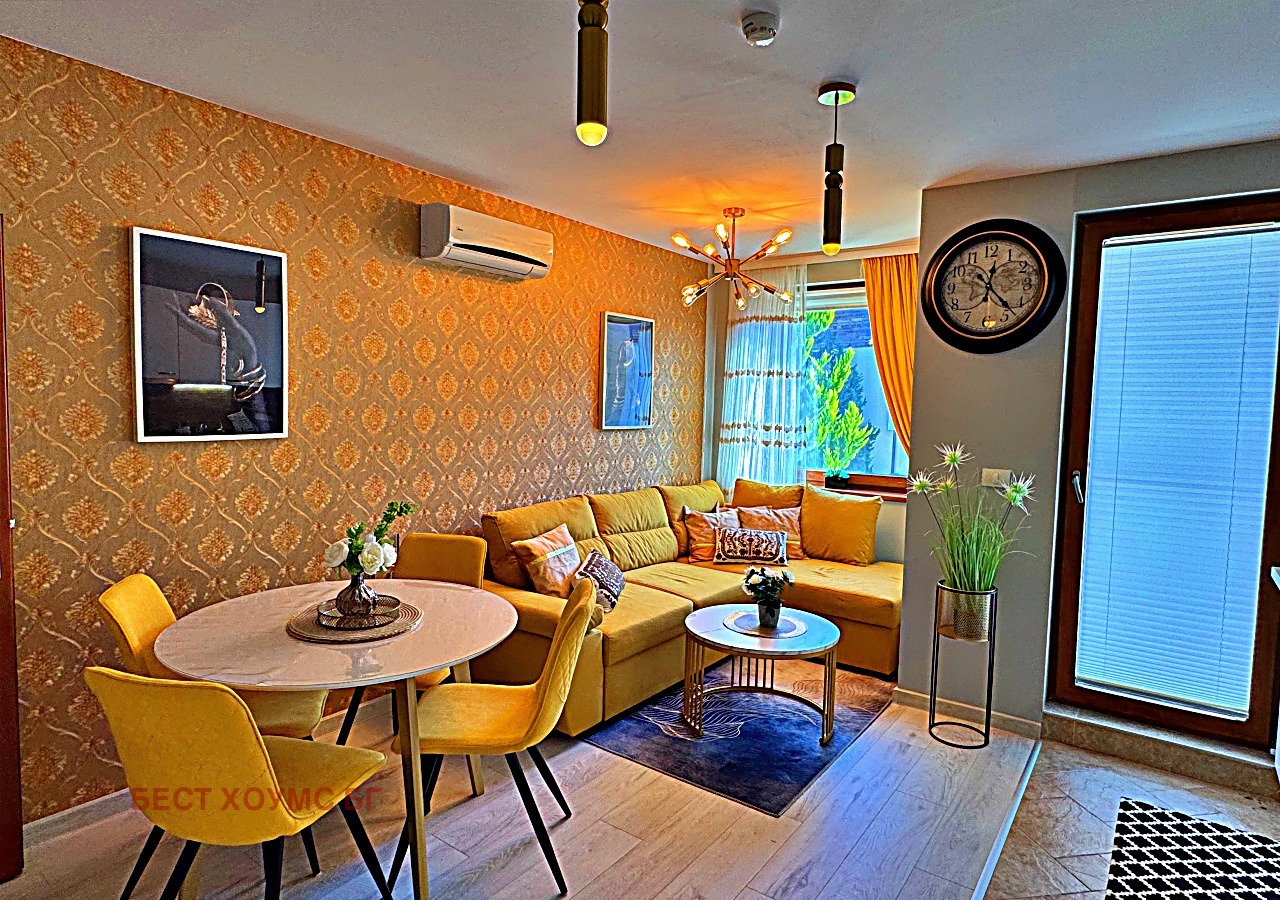 Жилището е току-що реновирано, с чисто ново обзавеждане и техника, напълно готово за лично ползване и незабавно отдаване под наем. Паркомясто в подземен паркинг е включено в таксата поддръжка без допълнителни разходи.