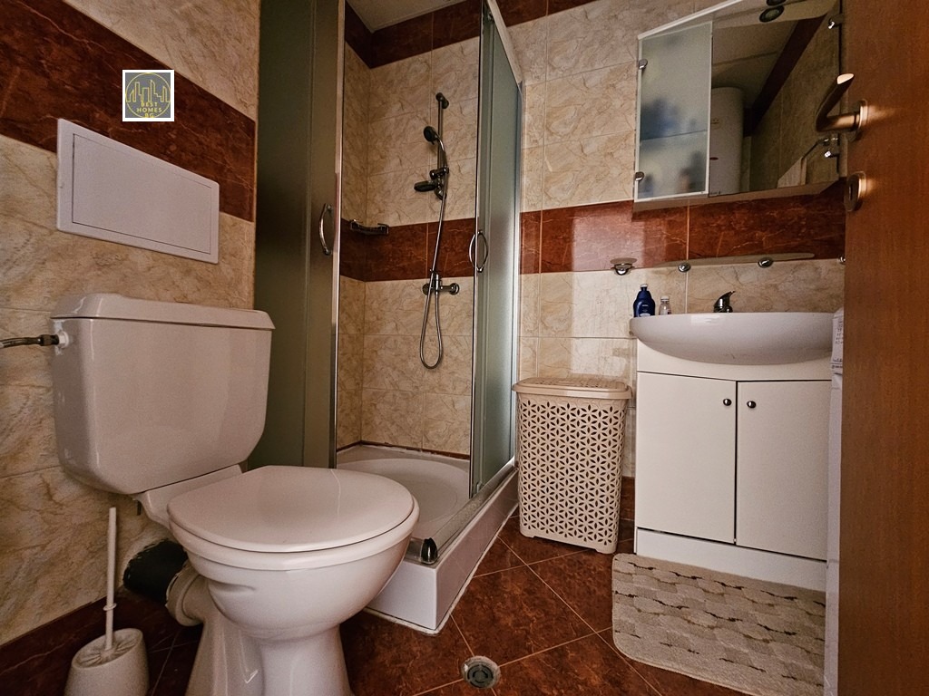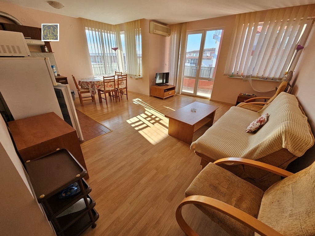 На 150 метра от плажа Робинзон, този просторен тристаен апартамент (124.7 кв.м) на третия етаж, предлага светла дневна, две уютни спални, две бани и не една, а две тераси, от които гледката е истинска магия.
