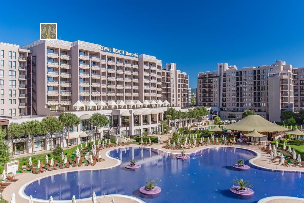 Предлагаме стилен, напълно обзаведен тристаен апартамент с площ от 105 кв.м в луксозния комплекс Barcelo Royal Beach.